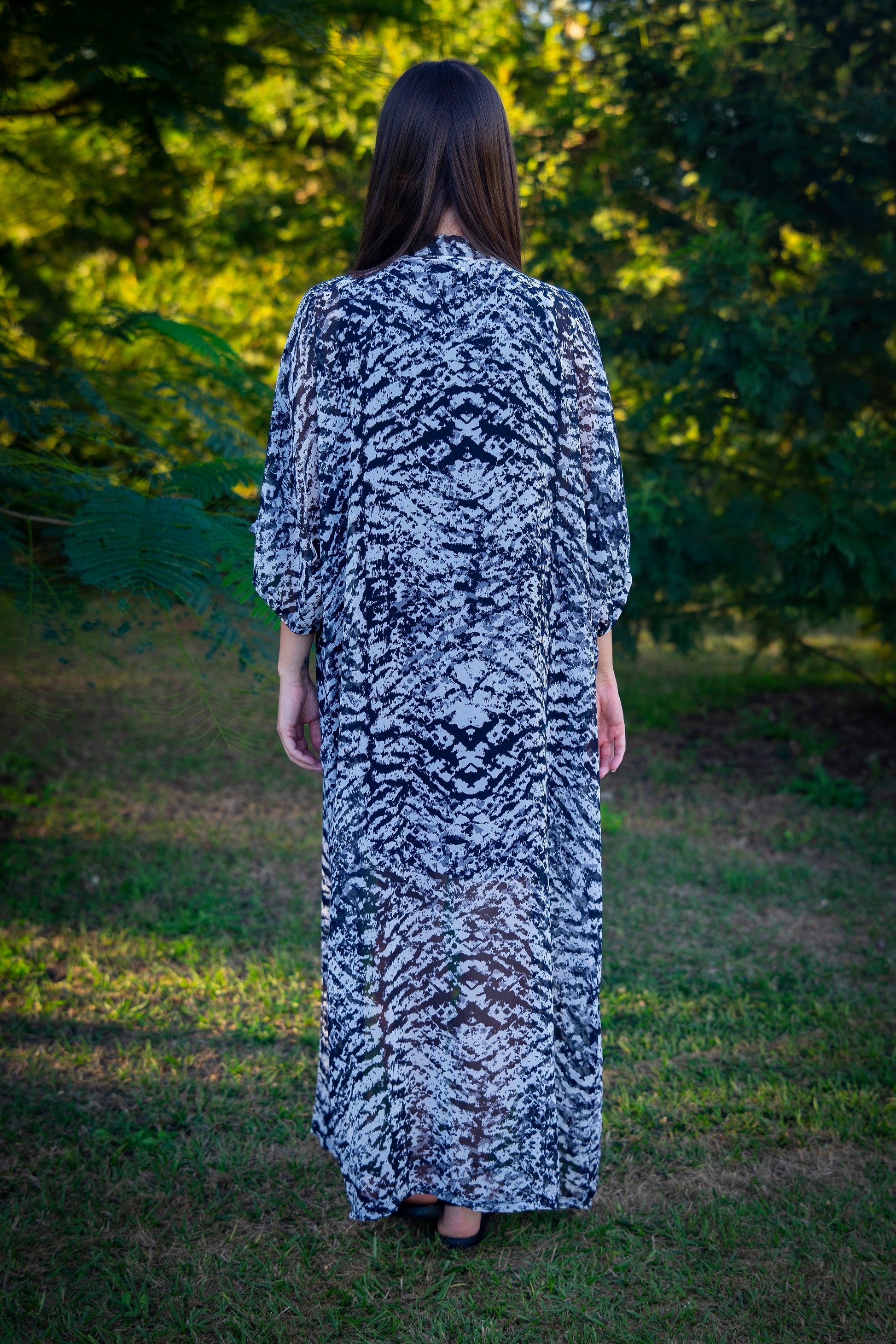 Indulge in the breathtaking beauty of our Black & White boho Open Kaftan Maxi!