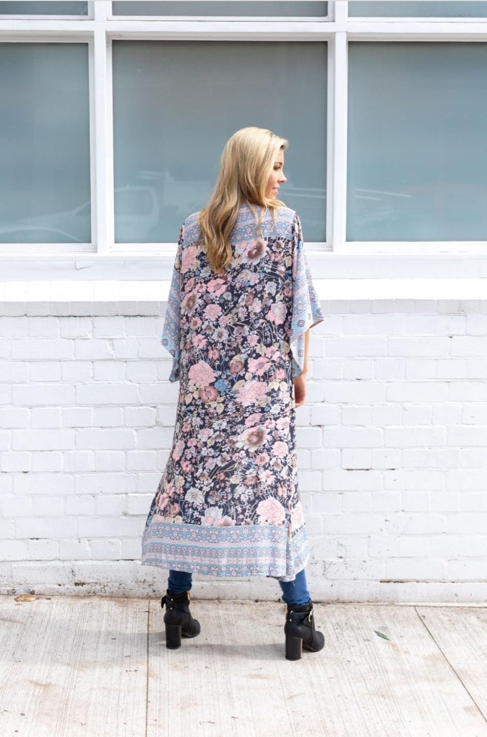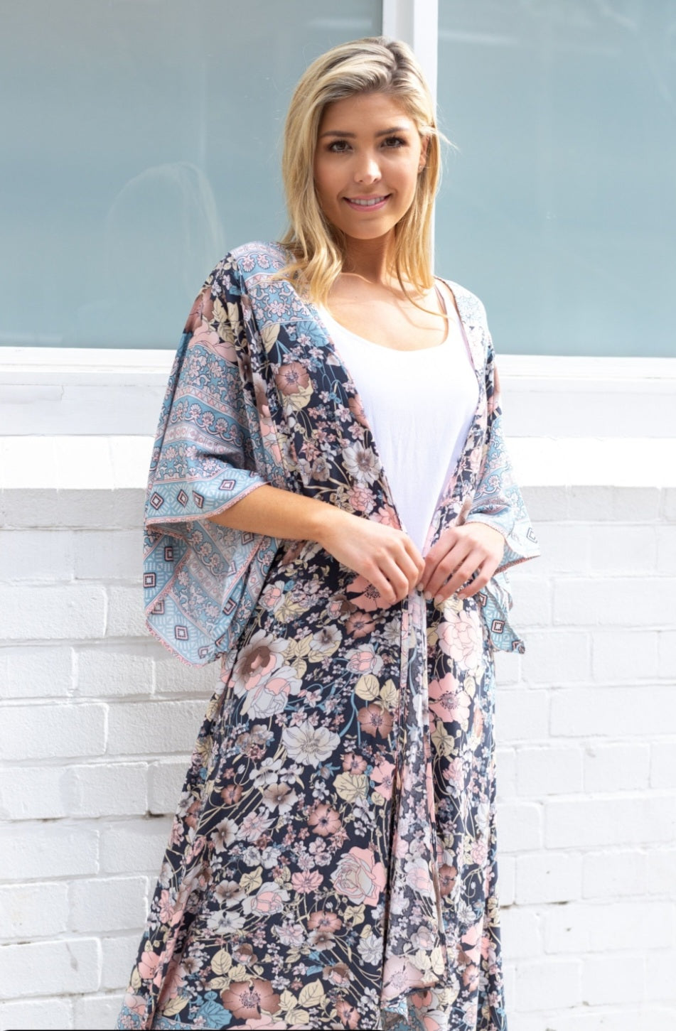DARK SECRETS Floral Maxi Kaftan Kimono Throw