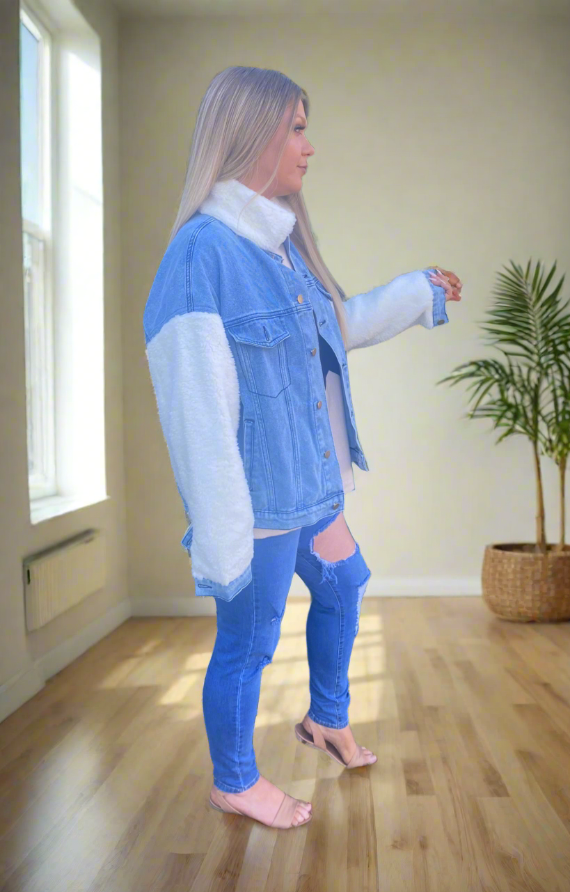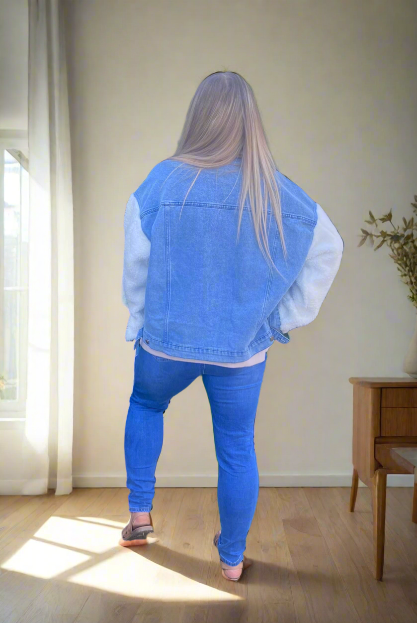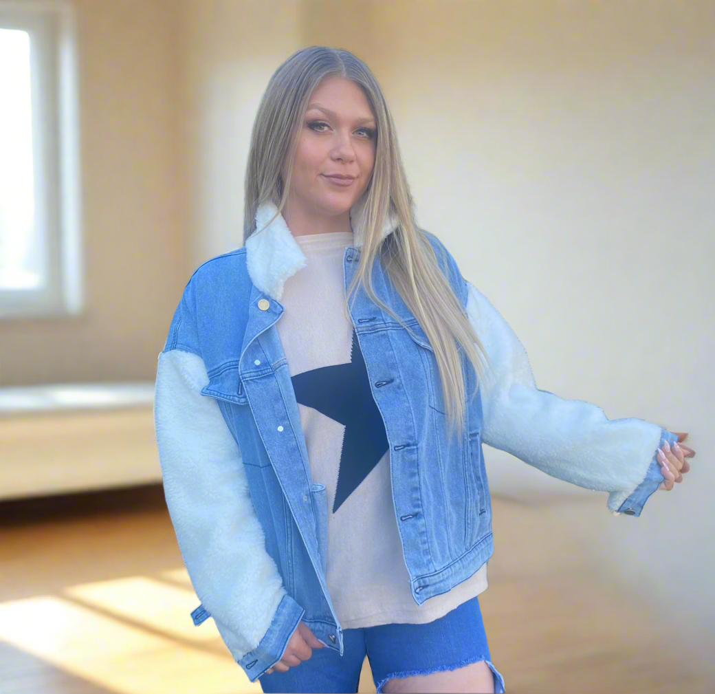 Experience ultimate comfort and style with our Blue Denim Jacket, featuring a soft and cozy white fleece lining.