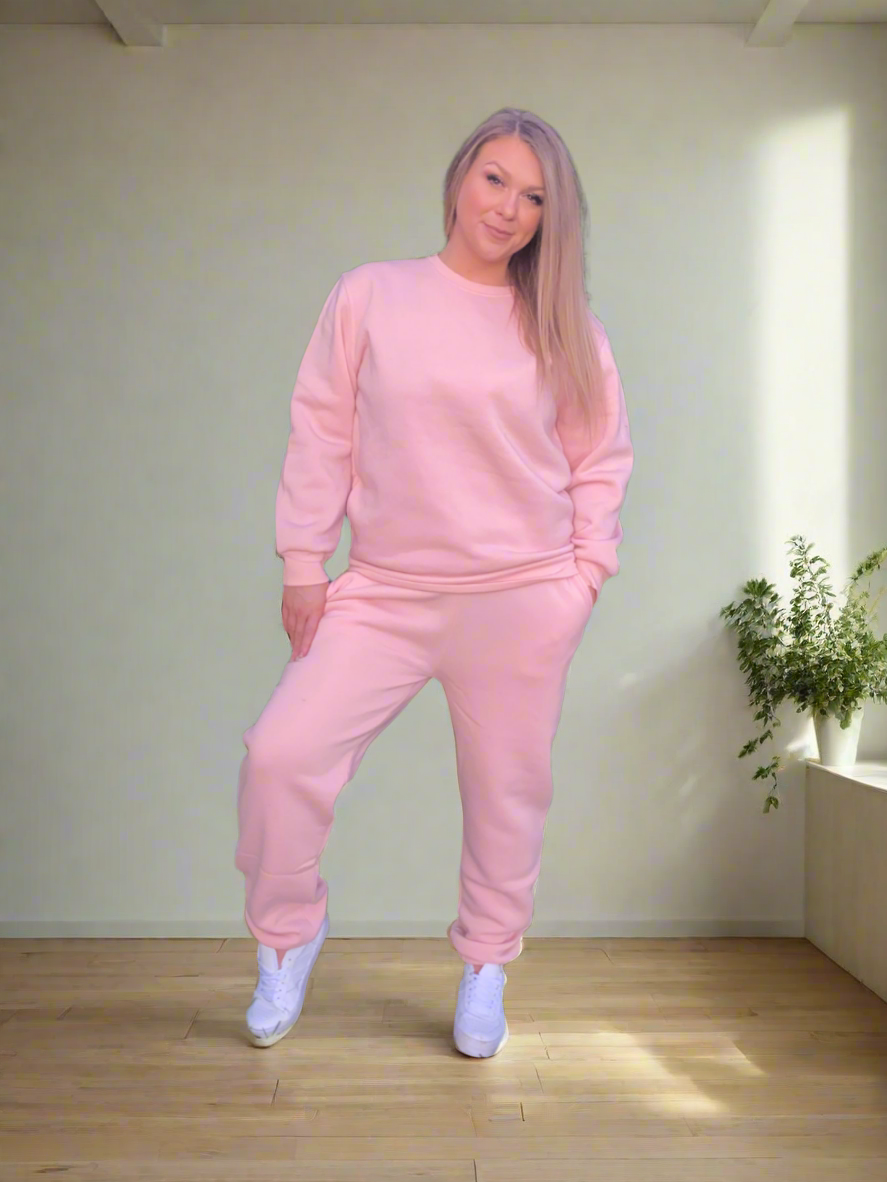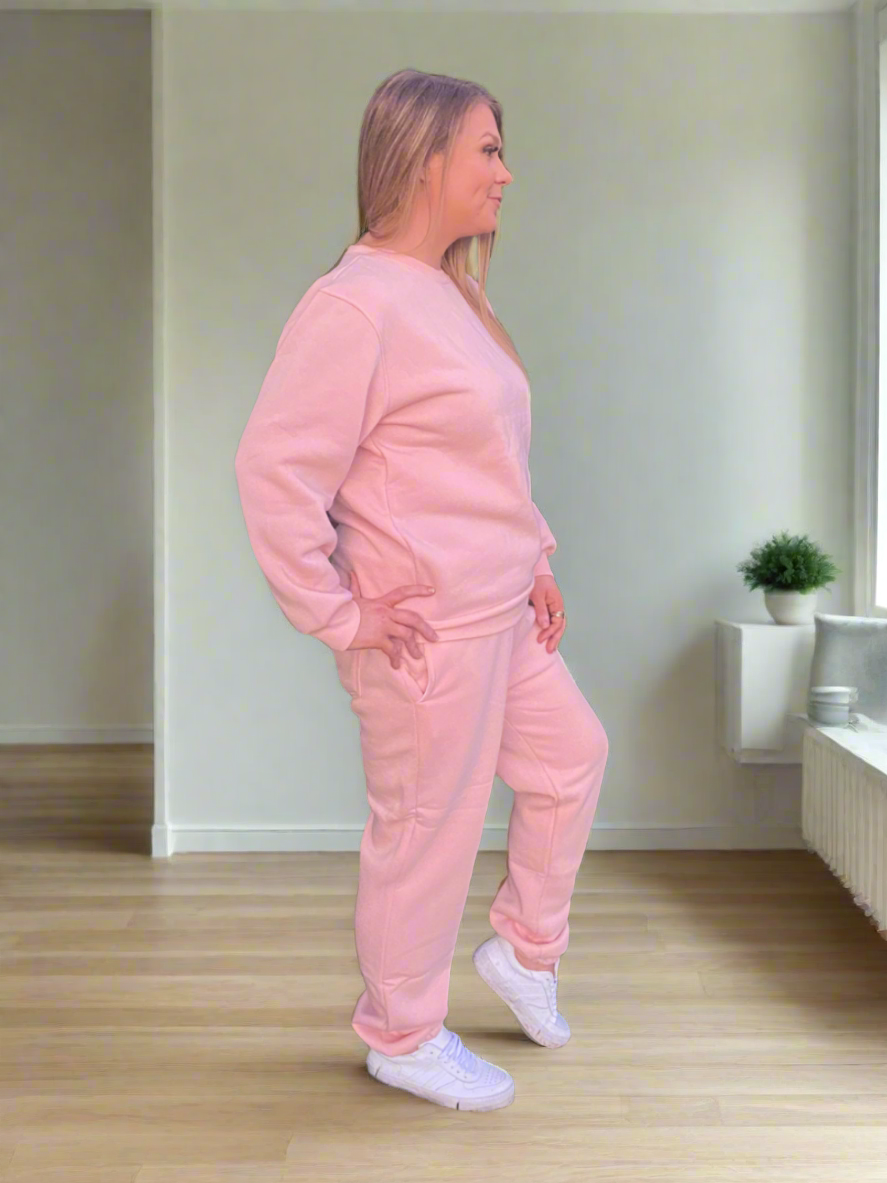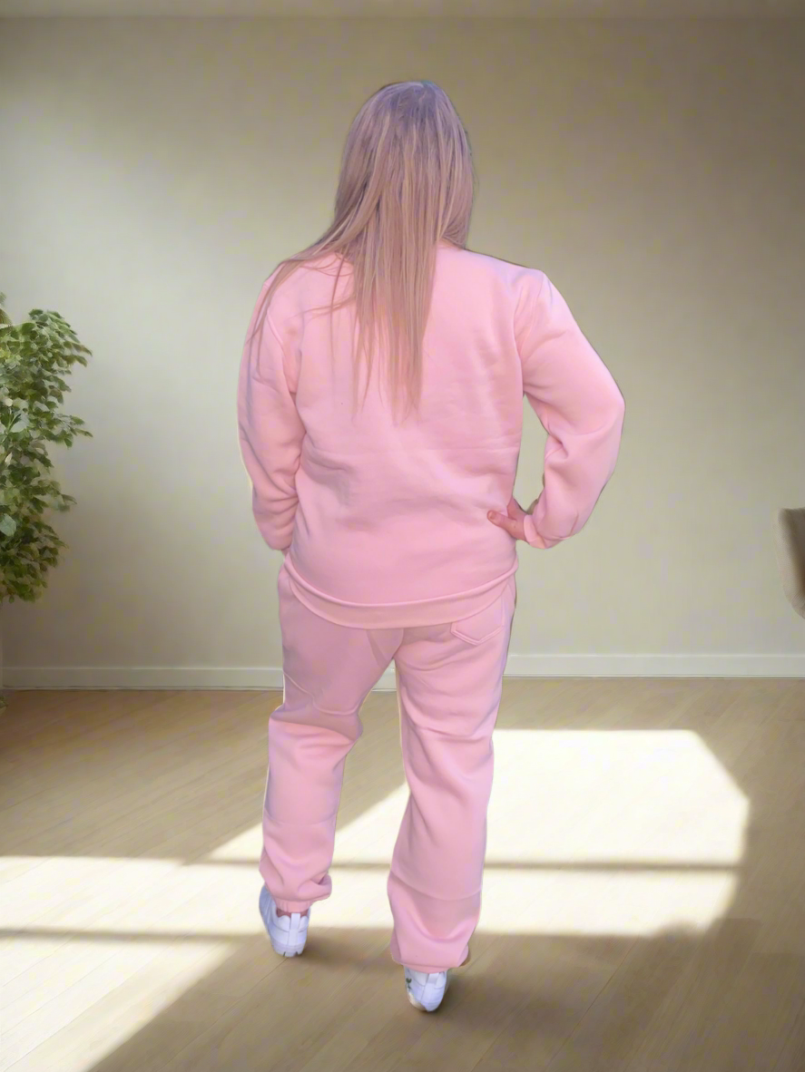 This crew neck jumper with matching pants is a stylish addition to any wardrobe. The beautiful pink design is a fun and stylish option that will get noticed.