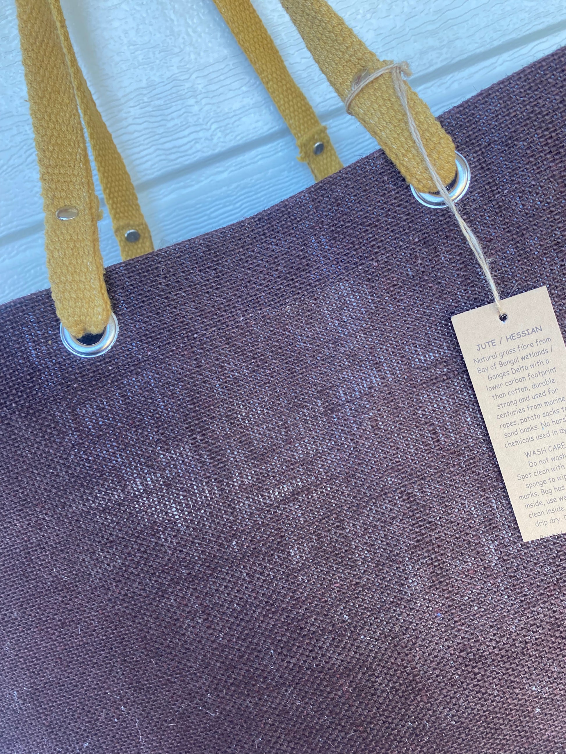This extra large bag (extra deep 25cm) in DARK BROWN colour is perfect for grocery shopping or beach bag or throw the kitchen sink in as it can store the large cereal boxes when you go shopping! It has eyelets attached to the handles for extra strength.