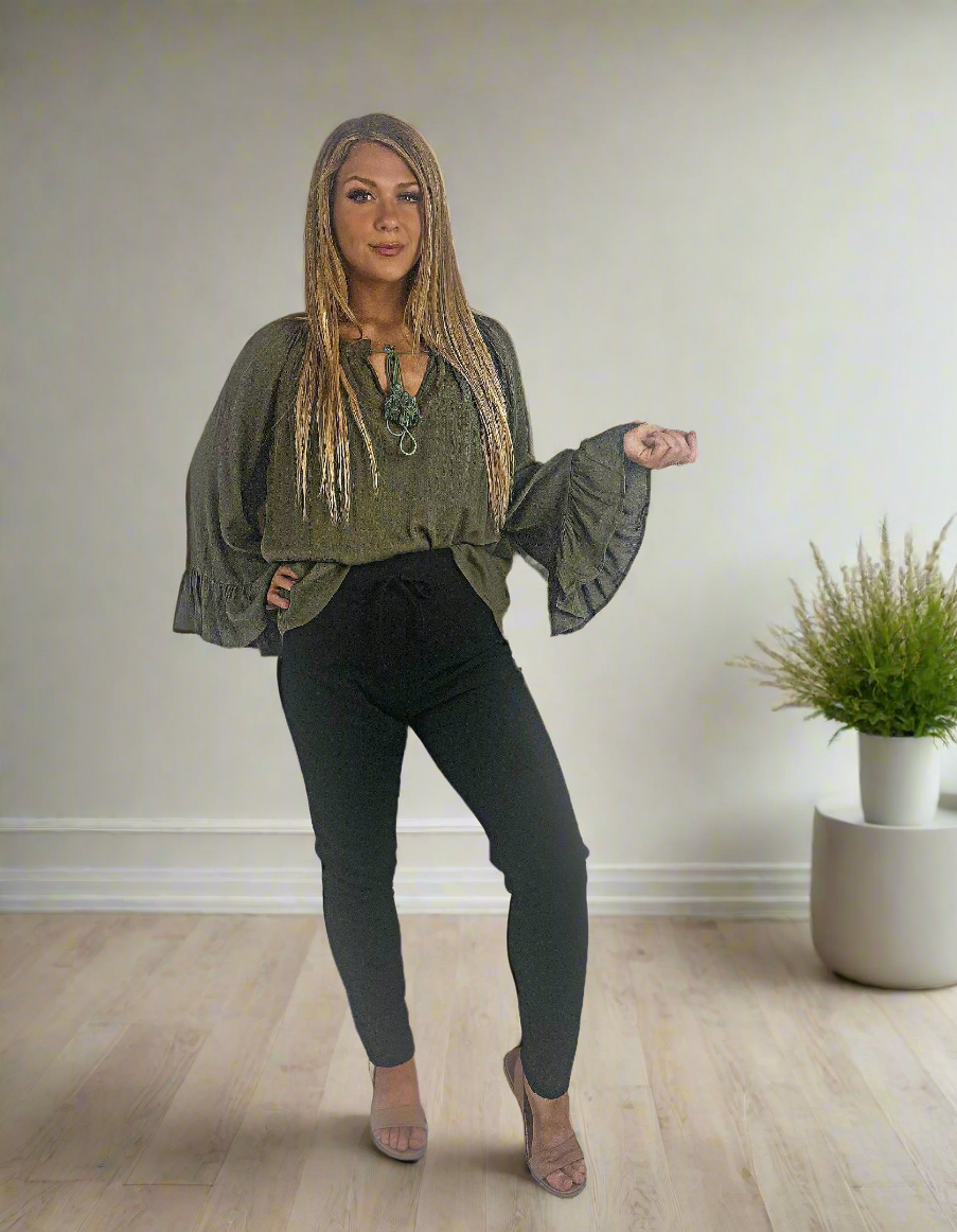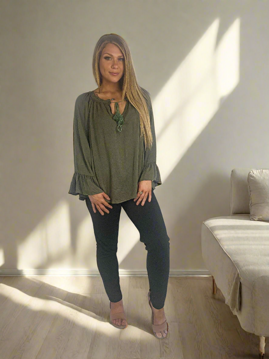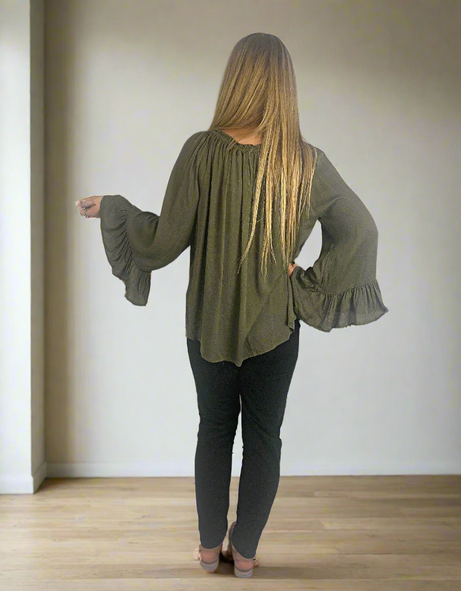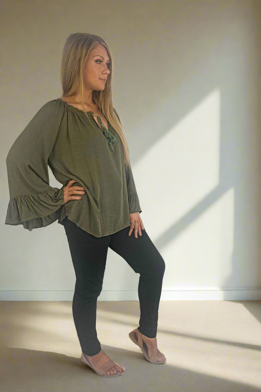 AVERY Long Sleeve Boho Tops - Black & Khaki