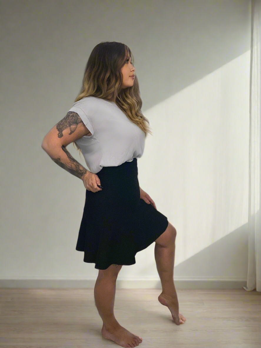 A fun and flirty mini skirt that is a great way to add a stylish touch to any outfit. The classic black color is a versatile choice that looks great with a variety of looks. Impress with a stylish flared bottom hemline.