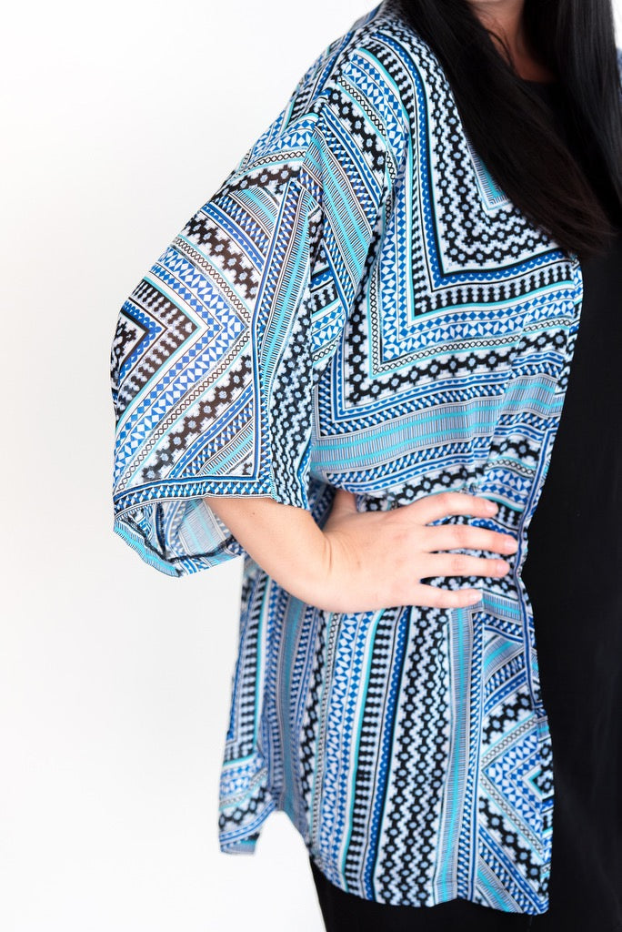 Made with high-quality fabric, the Blue Magic Dreams original Open Kaftan offers sophisticated style and versatility.