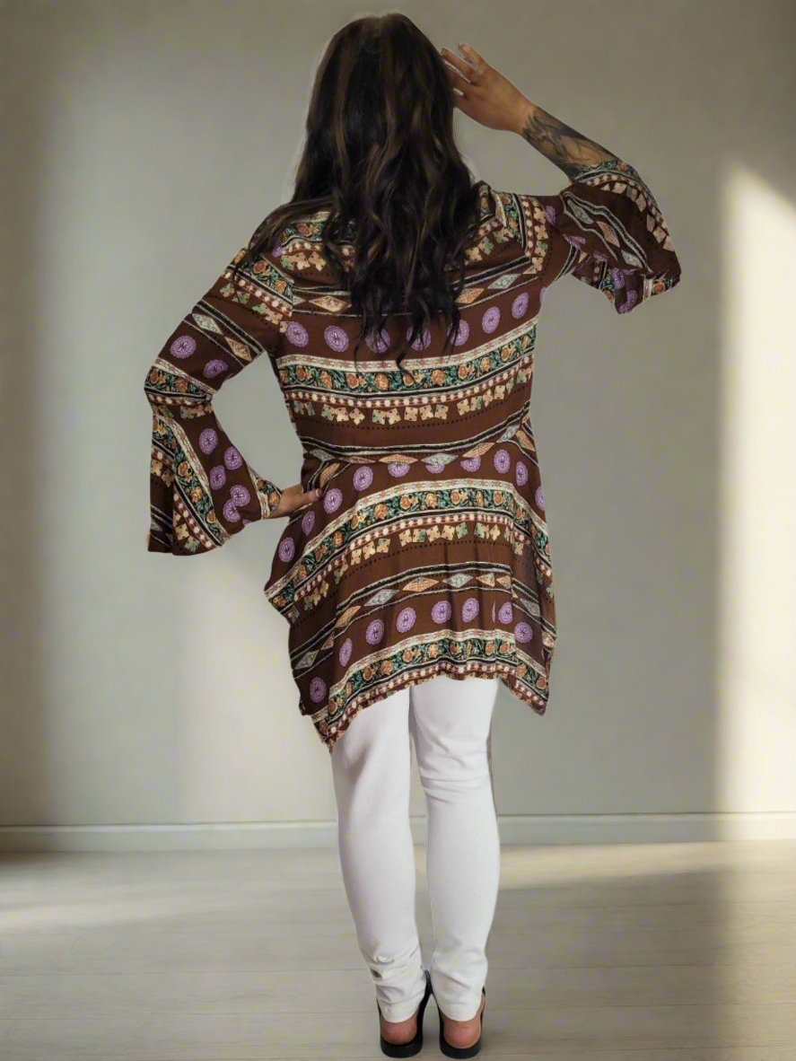 This versatile top has a clever design that features long stylish sleeves that keep your arms covered and protected from the elements.