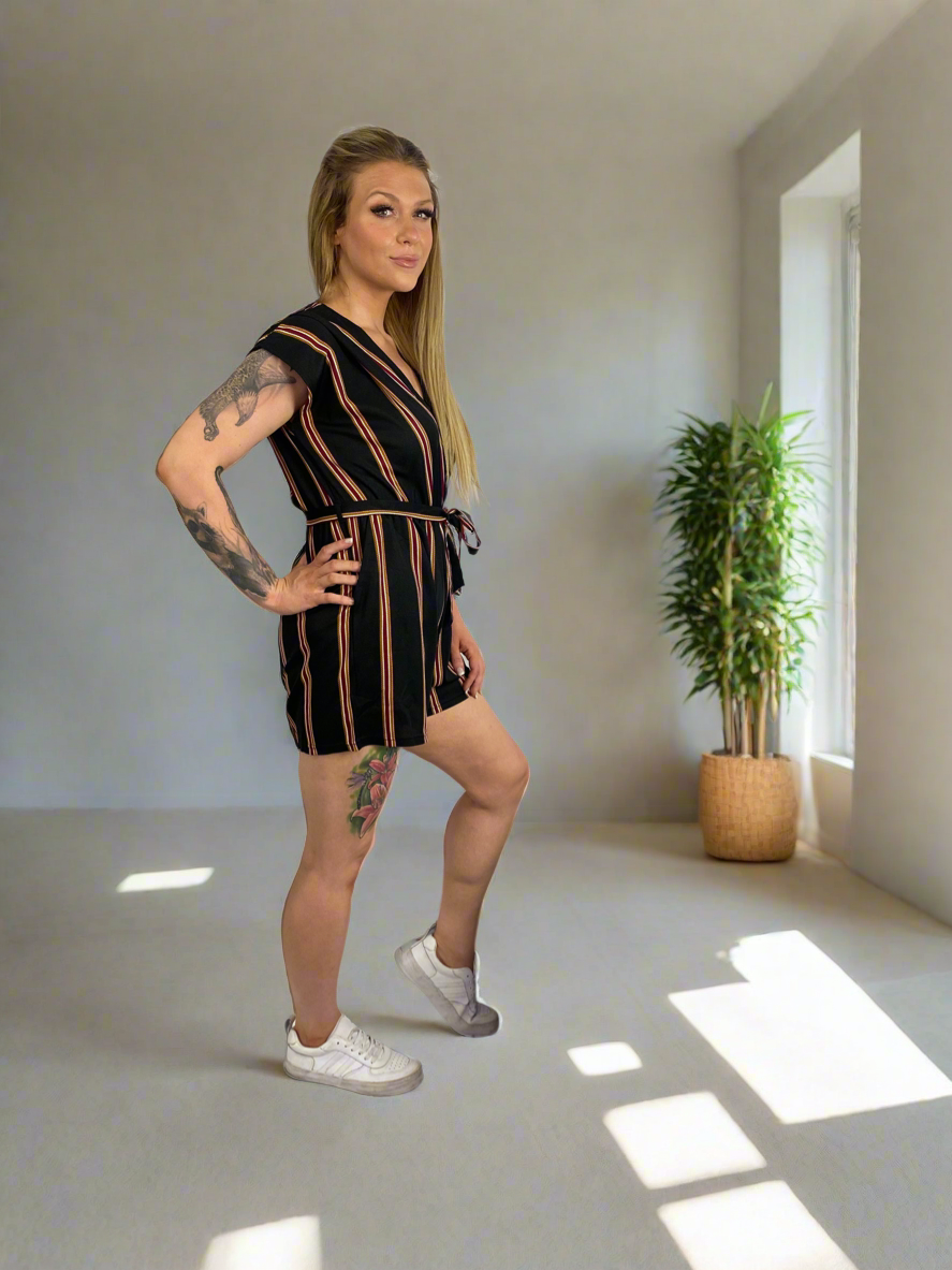 CARA Tye Up Stripe Stretch Playsuits are highly versatile and stylish. The stretch fabric is designed to be comfortable and easy to wear.