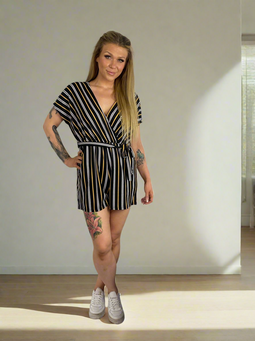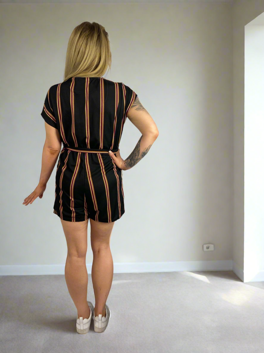 CARA Tye Up Stripe Stretch Playsuits 3 Colours- Caramello Stripe, Yellow Stripe & Black Stripe