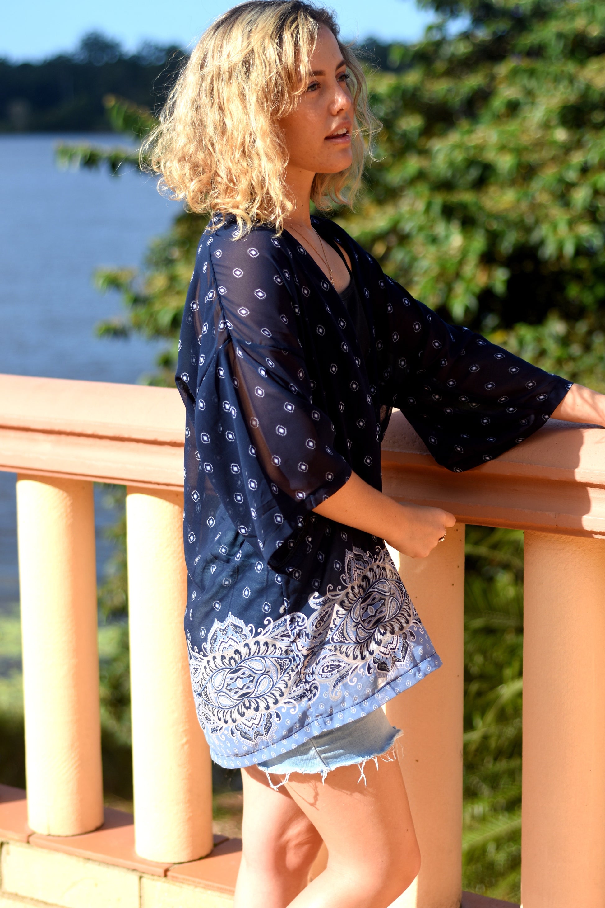 Made with high-quality fabric, the Blue Magic Dreams original Open Kaftan offers sophisticated style and versatility.