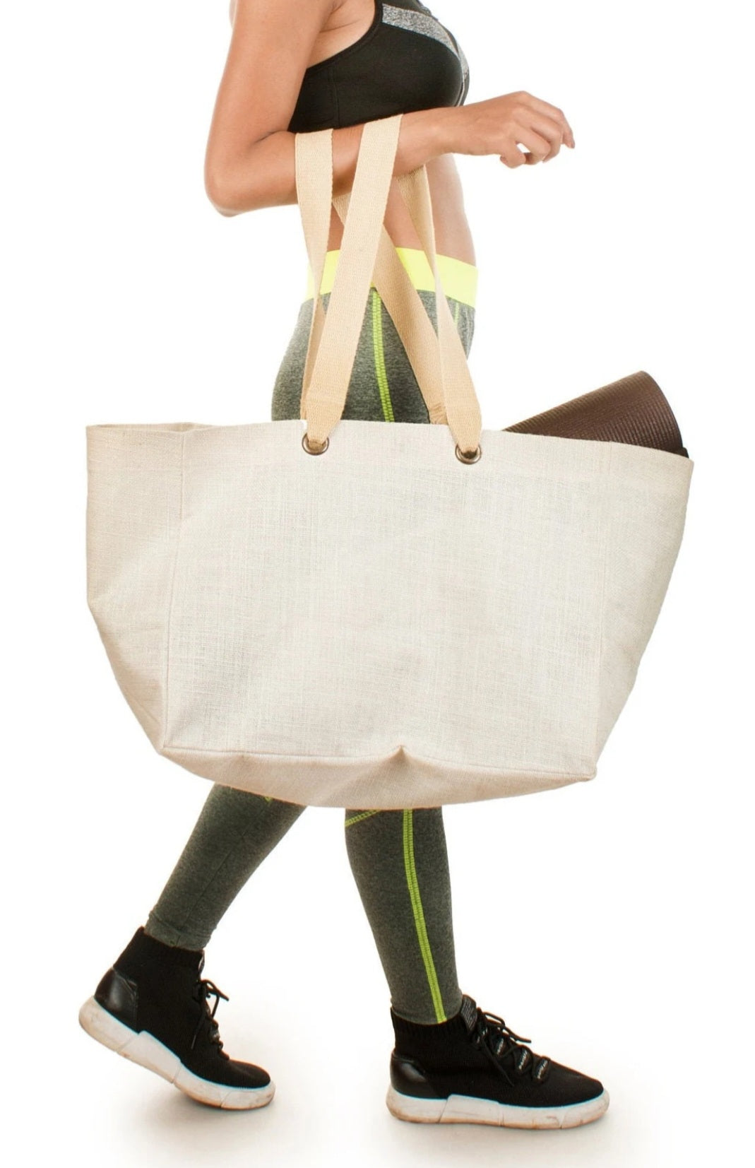 This extra large bag (extra deep 25cm) in WHITE colour is perfect for grocery shopping or beach bag or throw the kitchen sink in as it can store the large cereal boxes when you go shopping! It has eyelets attached to the handles for extra strength and a soft magnetic closure at the top.