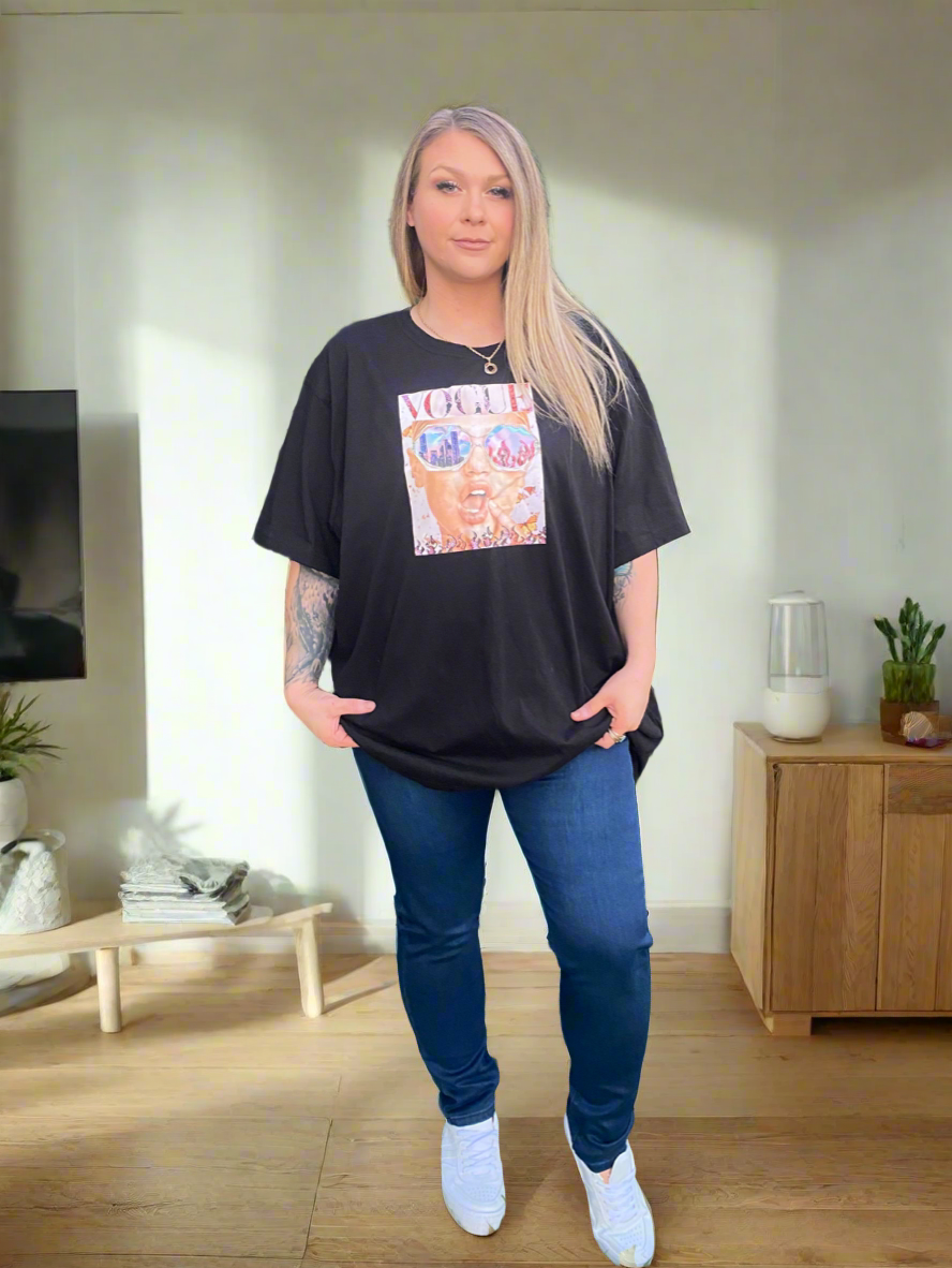 Indulge in luxury with our VOGUE Handmade black T-Shirt.