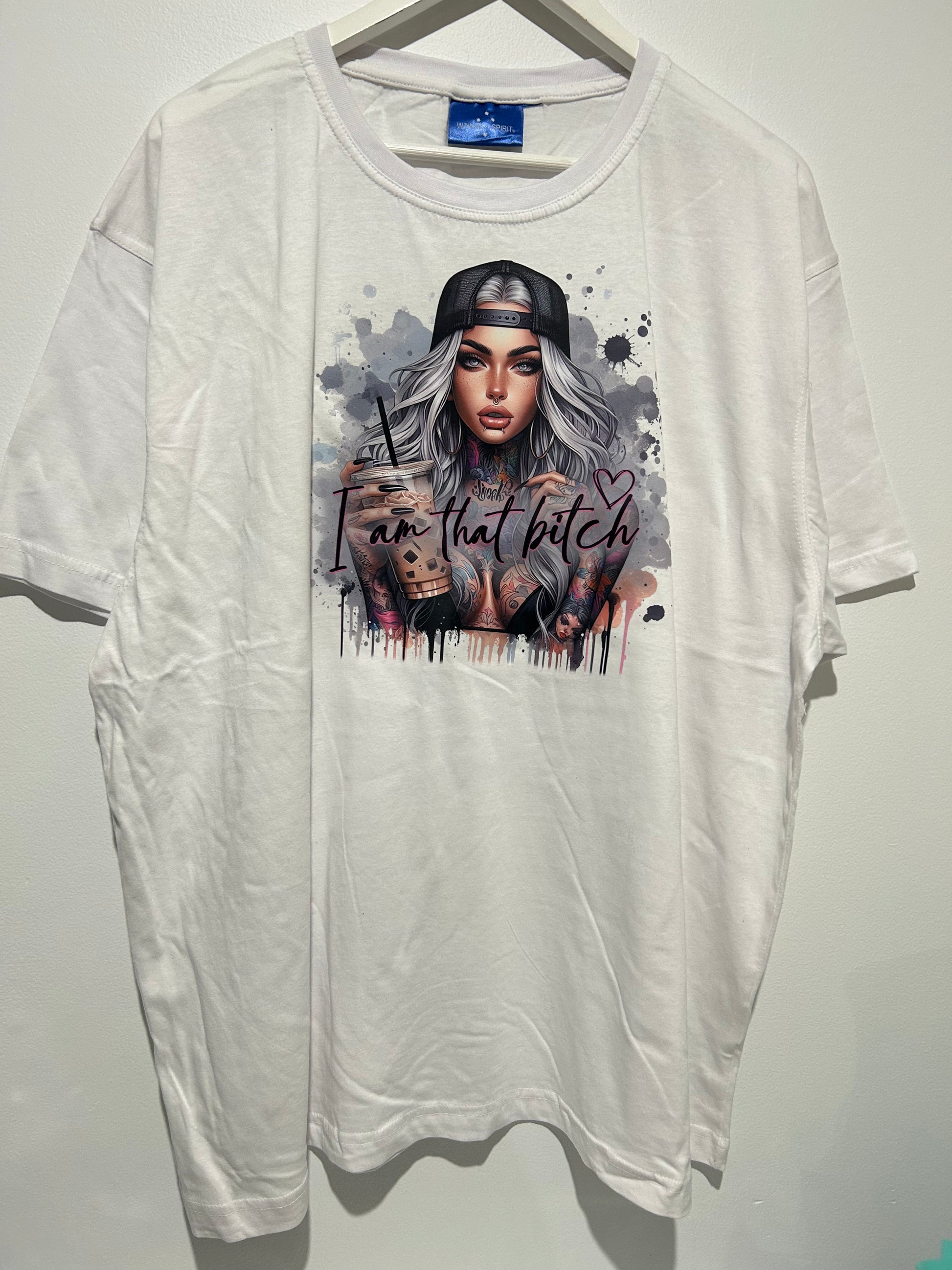 Stay comfortable and confident in our I Am That Bitch Handmade T-shirts. With Freesize sizing our one size fits many sizes feature ensures maximum comfort. Say goodbye to ill-fitting shirts and hello to effortless style and comfort 💖