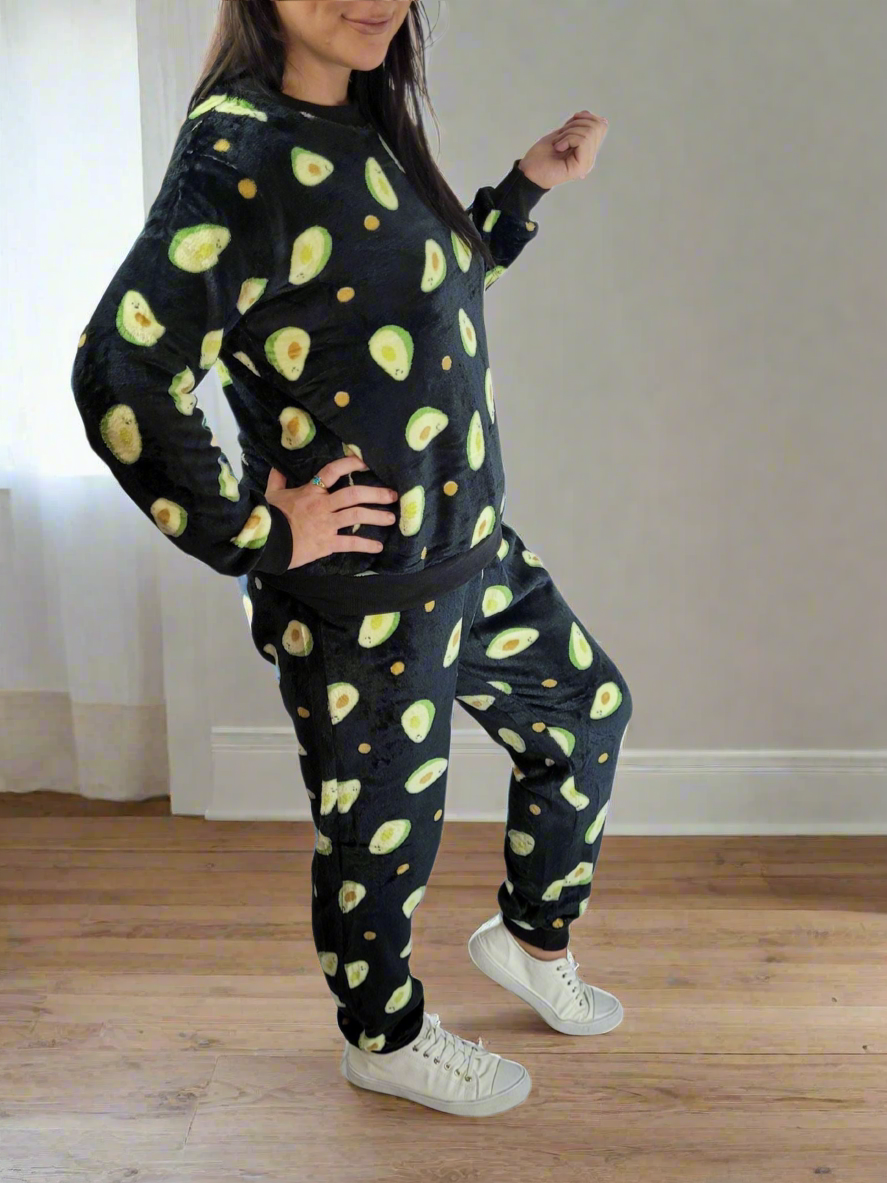 LACEY Avocados Cuffed fluff Lounge Wear Set
