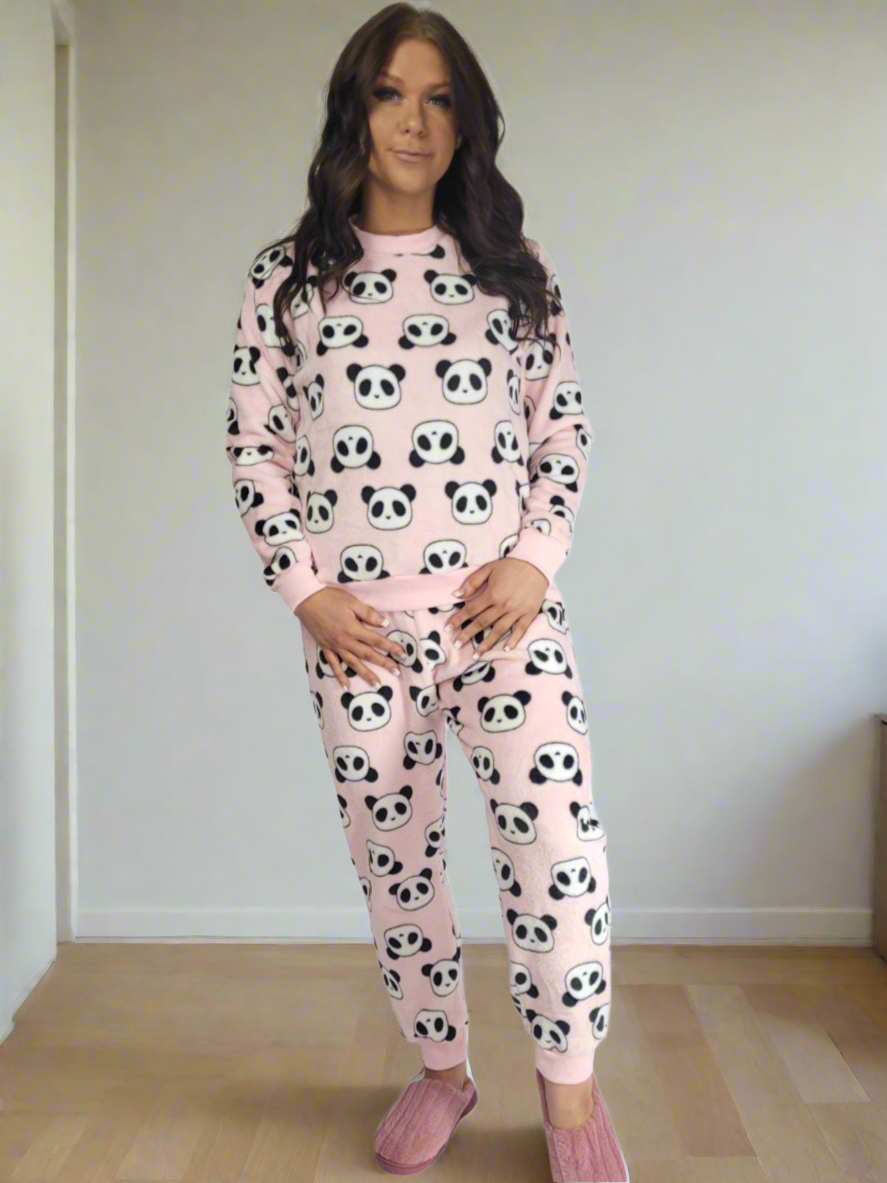 LACEY Pinda Panda Bears Cuffed fluff Lounge Wear Set