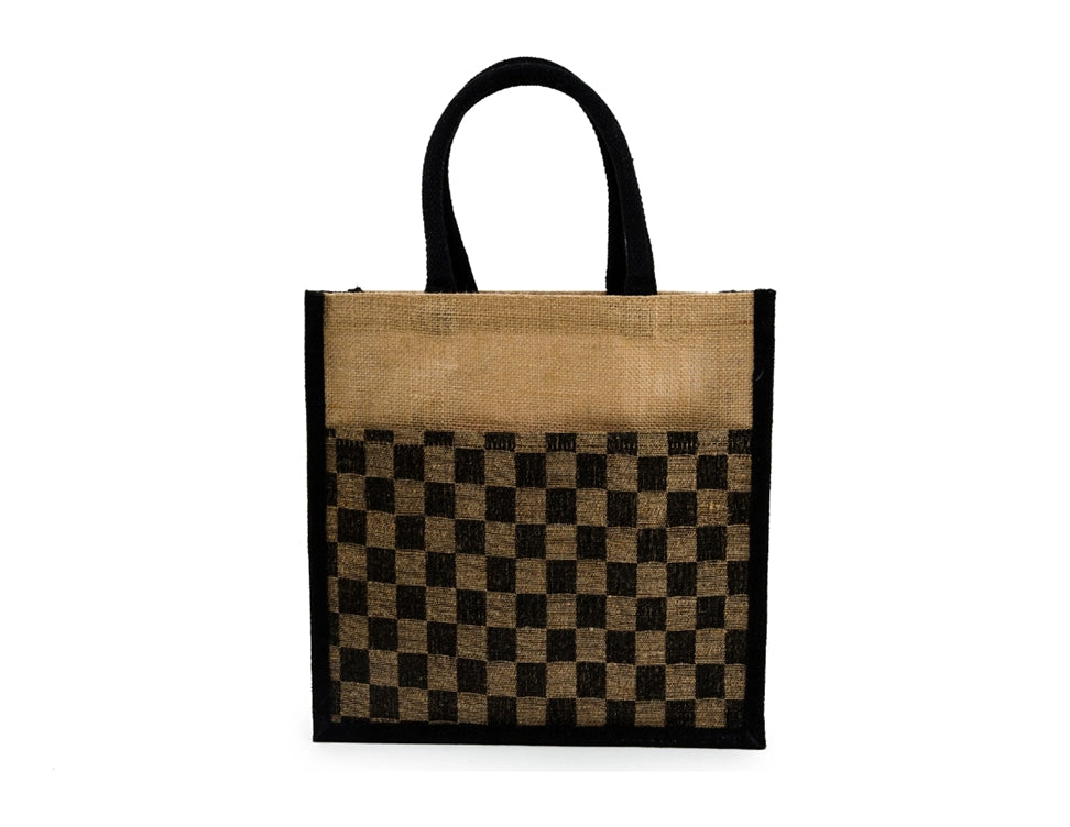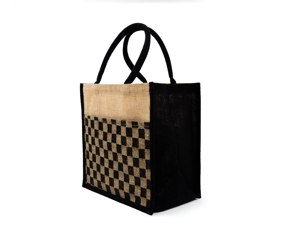 Large Black Checkered Pattern Luxe Tote Bag- Strong & Durable