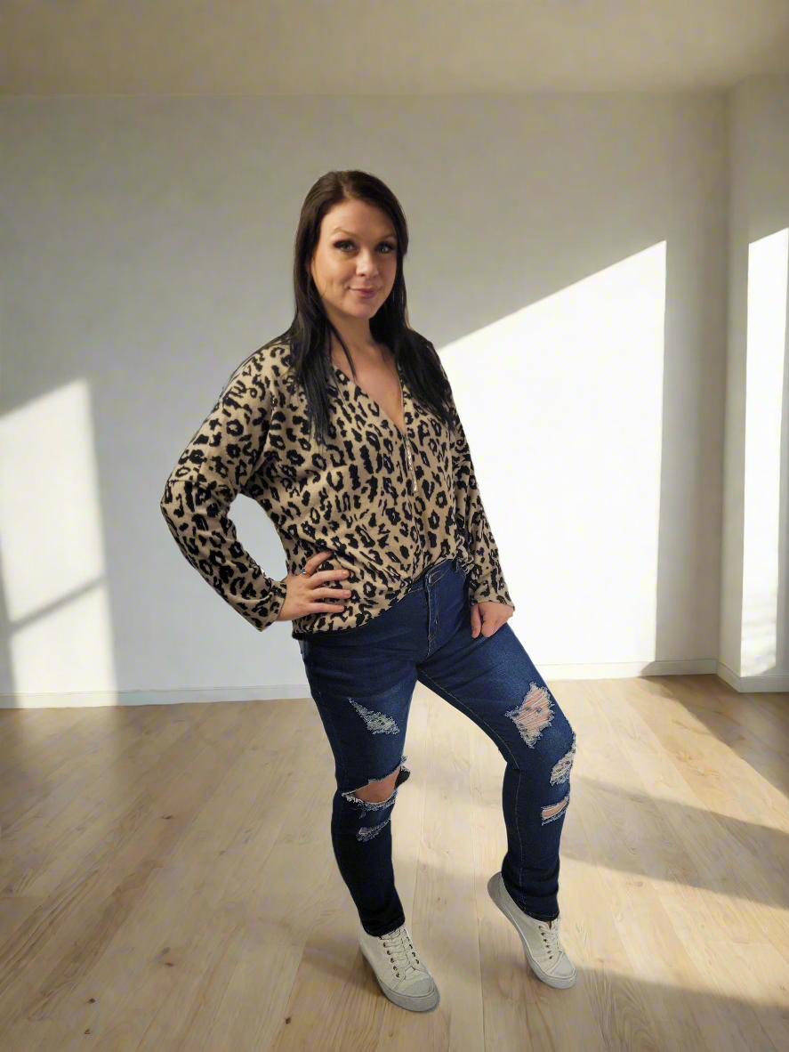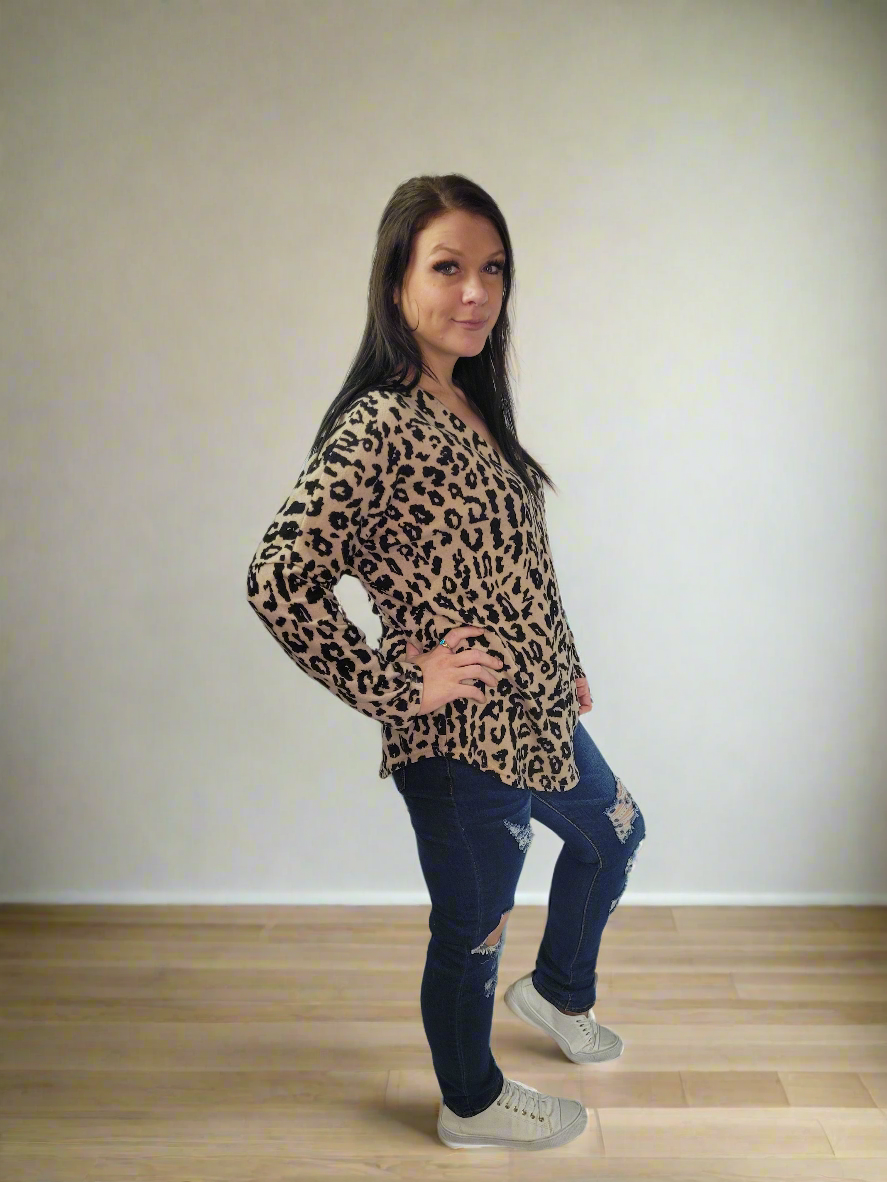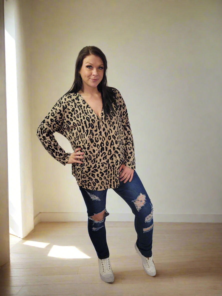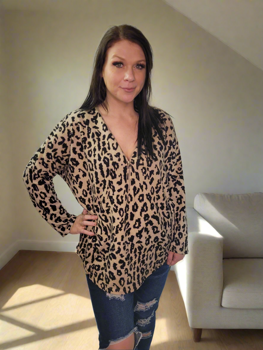 A long sleeved top with a stylish leopard print. It features a zipper detail for the bust and has a soft, comfy and stretchy feel for all-day comfort.