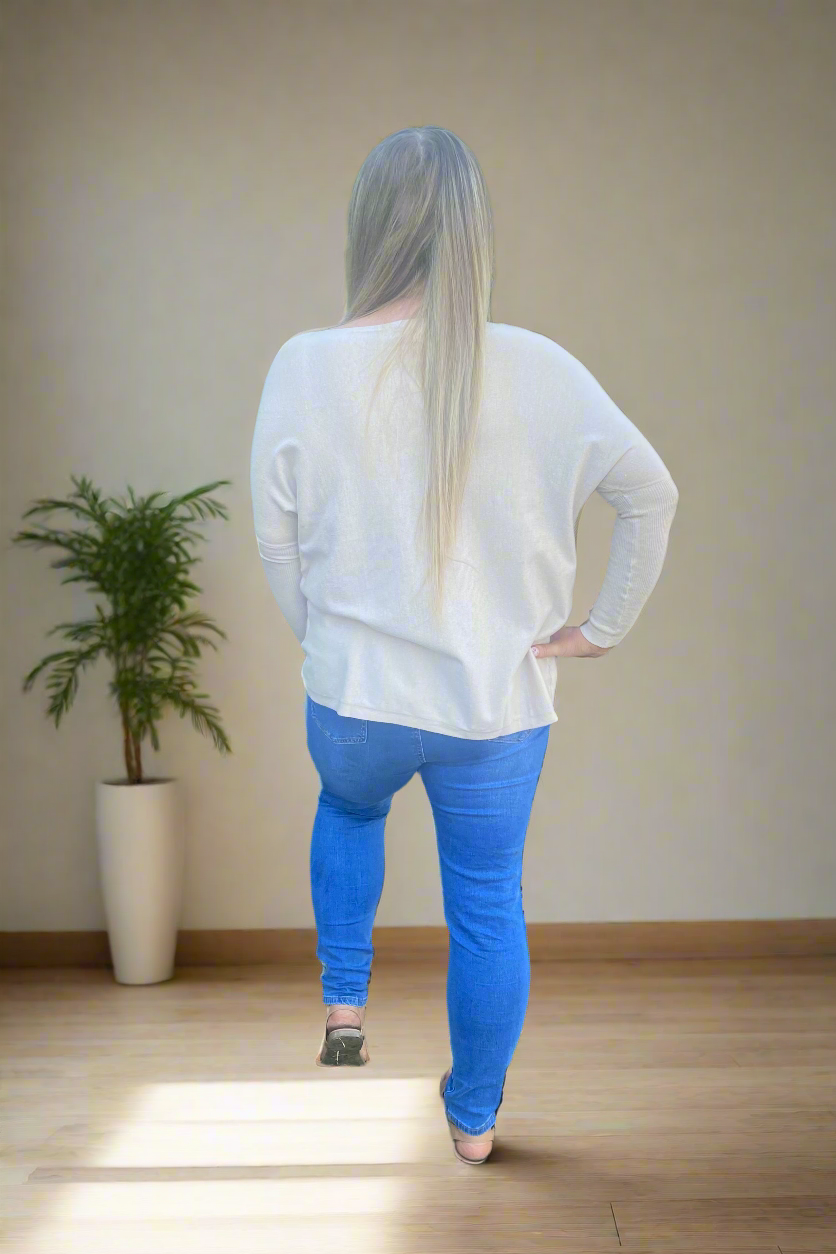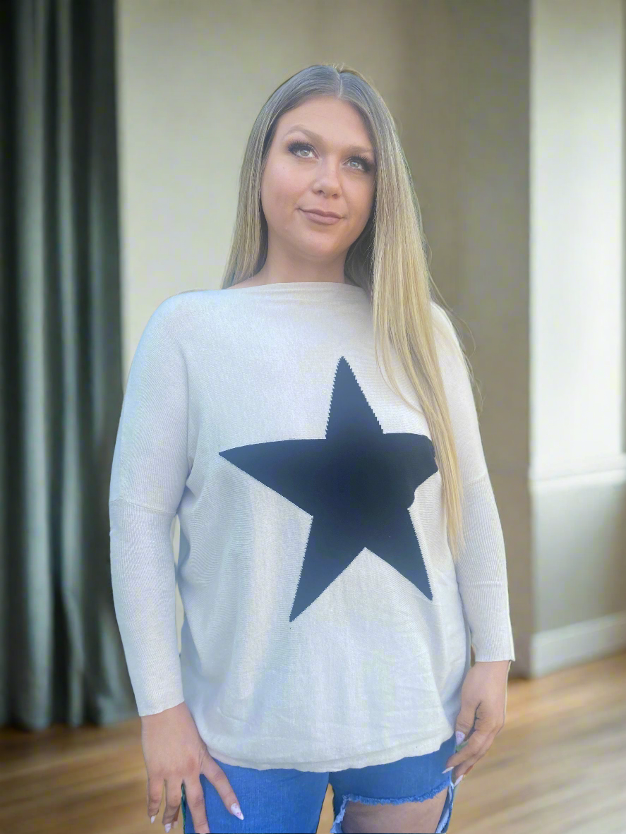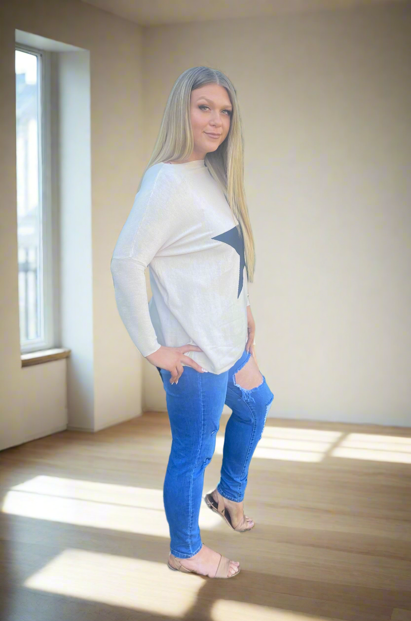 Add a touch of whimsy to your wardrobe with our cream Long Sleeve with black Star Top!
