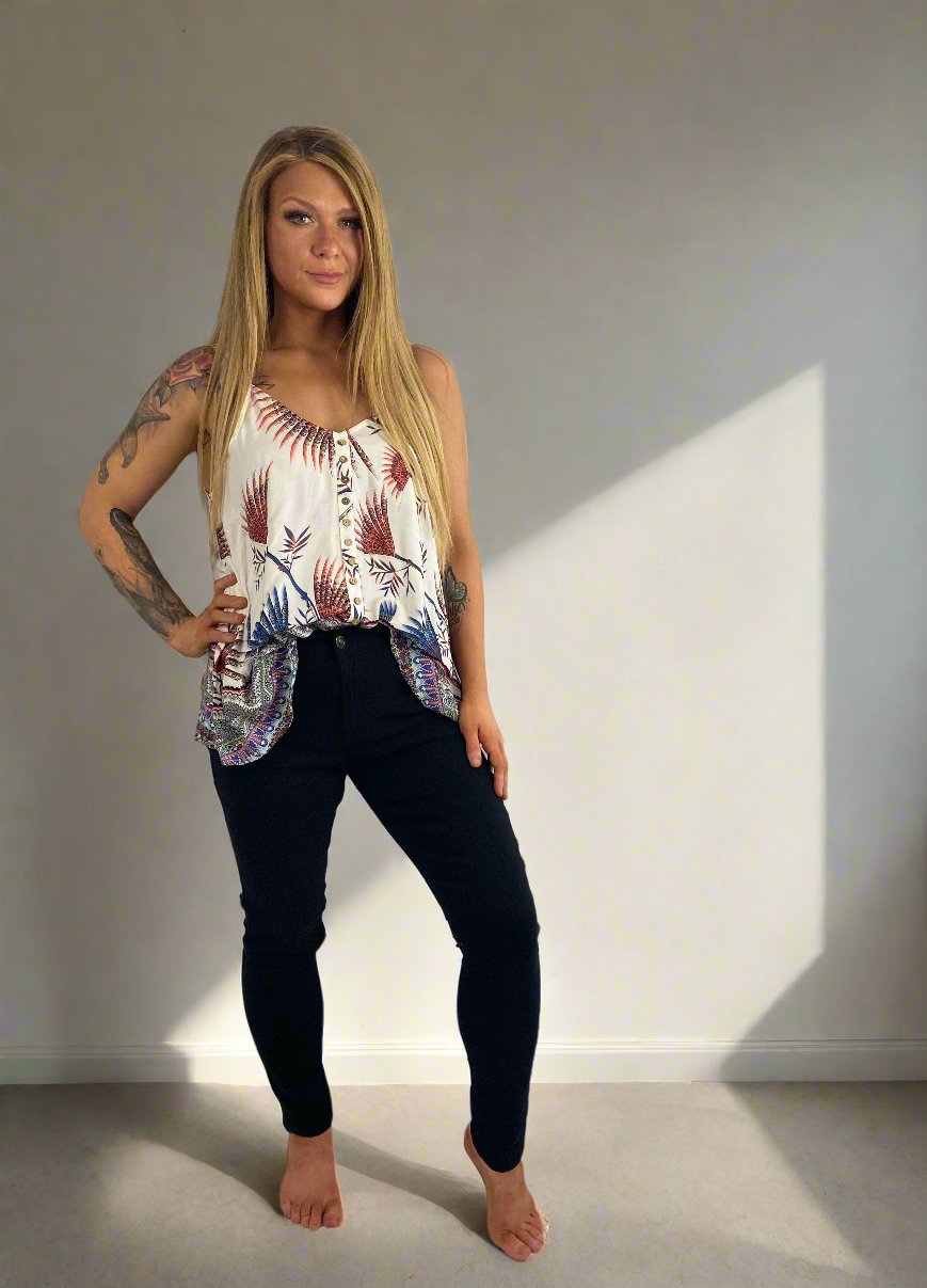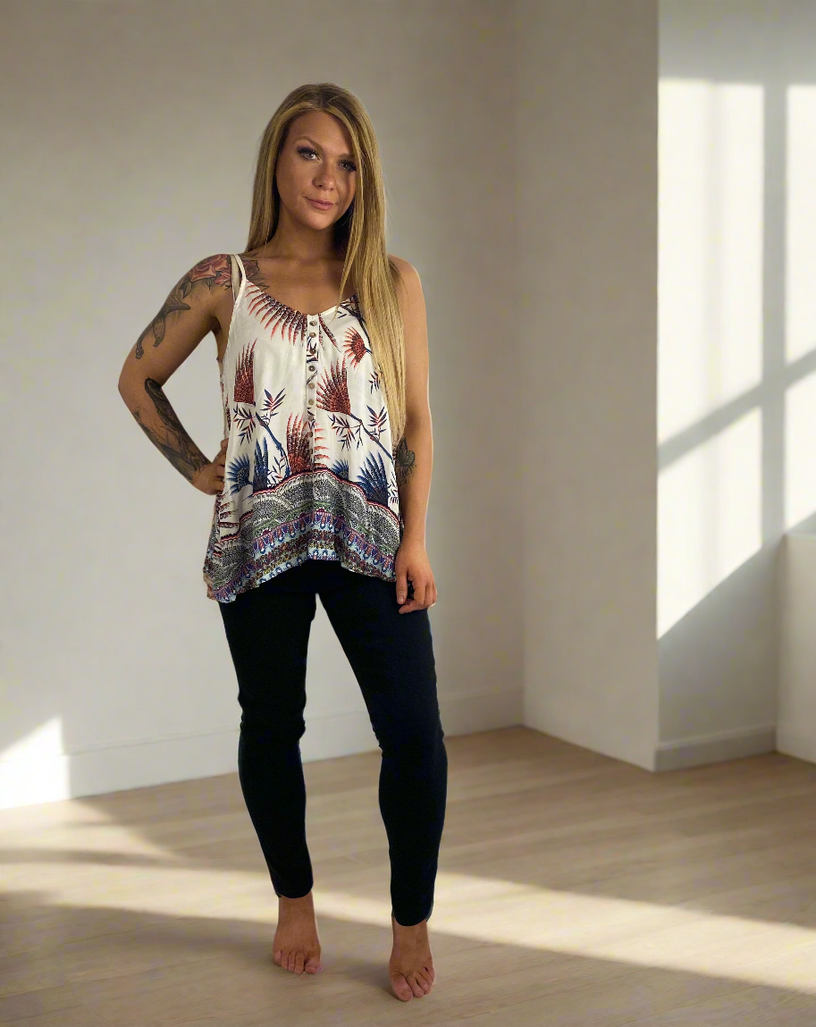 Easy to wear, this super cute top is a must-have this summer. A soft and comfortable material makes it ideal to wear all day and night. The cute and fun colors and style make it a style that will become a favorite in no time.
